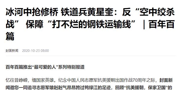 冰河中抢修桥 铁道兵黄星奎:反“空中绞杀战” 保障“打不烂的钢铁运输线”|百年百篇-封面新闻2020-10-23