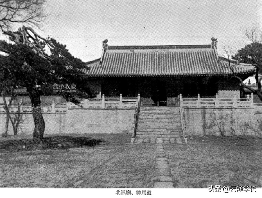 1942年时,从北镇庙鼓楼上向北拍摄,图中能看到碑亭、御香殿、大殿、内香殿、寝宫