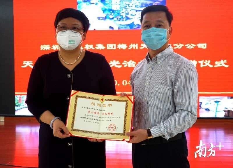 4月22日,梅州市天基权科技有限公司向梅州援鄂抗疫英雄捐赠51部天基权量子激光治疗仪,总价值为25.398万元。仪式在梅州市卫生健康局举行。