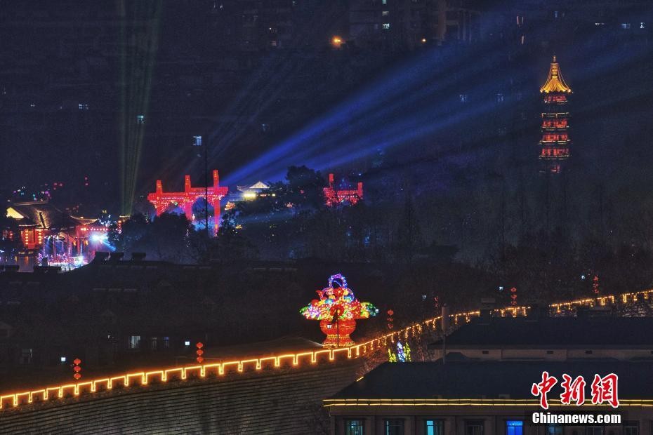 南京秦淮灯会亮灯迎春 明城墙内外“飘”年味
