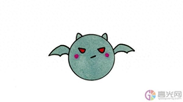 首先我们画一个圆形作为蝙蝠的脑袋,然后画出蝙蝠的耳朵,接着画出蝙蝠的眼睛,之后画出蝙蝠的翅膀,最后画出蝙蝠的嘴巴和脸颊的腮红,并给蝙蝠上色,这样万圣节蝙蝠简笔画就完成啦!