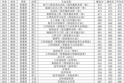 四、西安交通大学2023年在传统高考省份各专业录取分数线