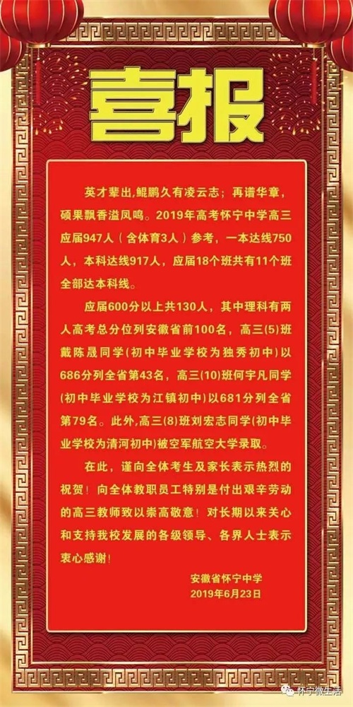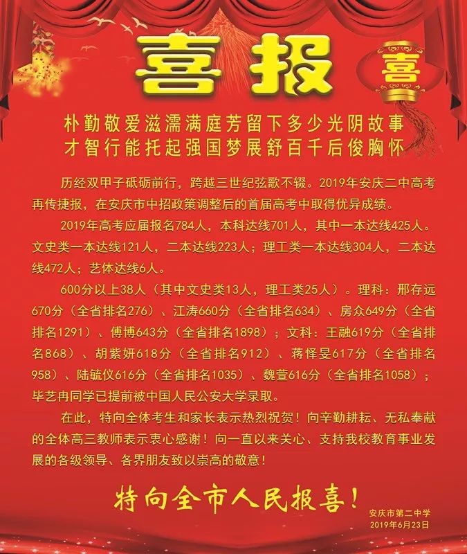 2019高考安庆最高分出炉:文科656分、理科702分!还有新鲜出炉的各高中喜报