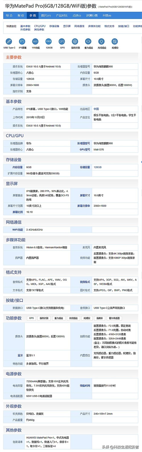 从HUAWEI MatePad Pro的配置参数看出这款平板也是搭载的麒麟990处理器,采用八核心设计,搭配6GB高速运行内存,机身内存为128GB,标配10.8寸2K屏幕,标配四立体声扬声器。
