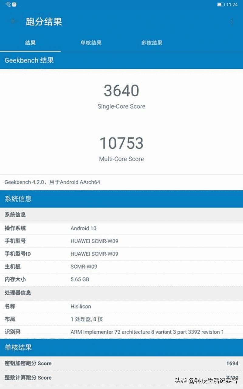 用Geekbench 4进行测试,麒麟990的多核得分成绩为10753分,单核为3640分,综合表现非常不错。可见华为MatePad 10.8的综合性能是足够强劲。