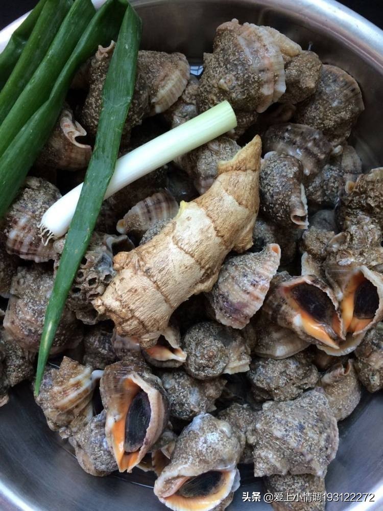 2将海螺放入盆中,加入盐,加入适量水,浸泡一个晚上,让海螺吐净杂物。