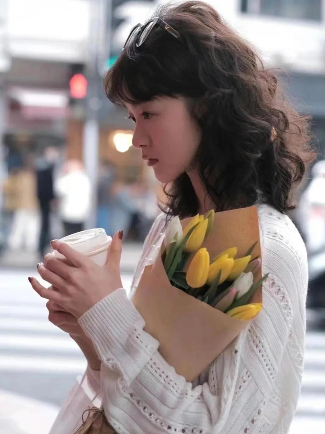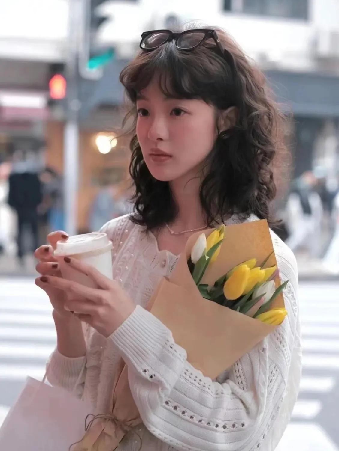 采用了羊毛卷的烫发方式,把宽度适当放大一号,头发本身又相对细软。就呈现出慵懒的、随着的波浪!