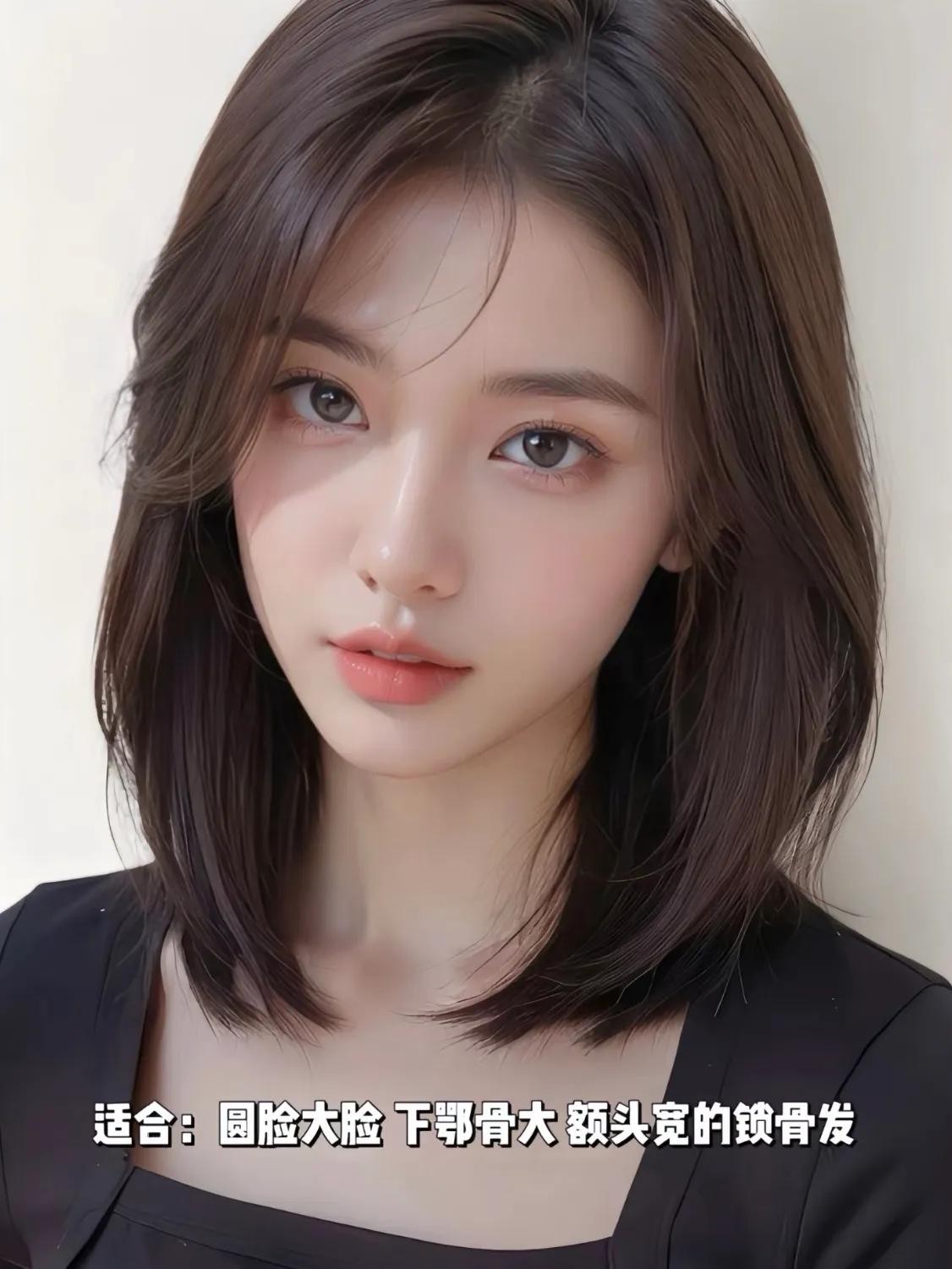 这类发型长度大概在下巴到肩膀上一点,可以不用烫发!即可以挂在耳朵后面,又可以自然散落,还可以半扎头发,可变形强,修饰脸型效果明显!