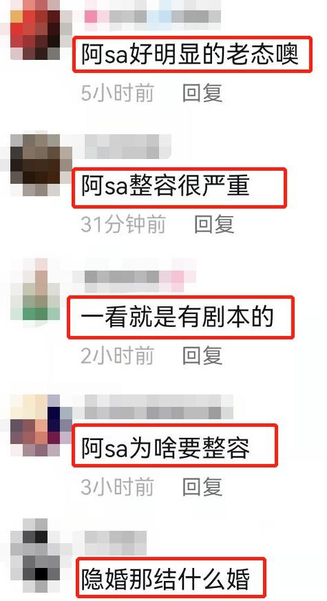 不过久未露面的阿Sa这次在泡温泉罕见素颜出镜,颜值下跌也引来不少热议,网友们纷纷吐槽阿Sa的脸塌了,猜测是不是整容了,素颜显得很老态,尤其是阿Sa看起来完全扛不住大特写镜头,对比身边的阿娇,阿Sa的颜值确实大不如前了!