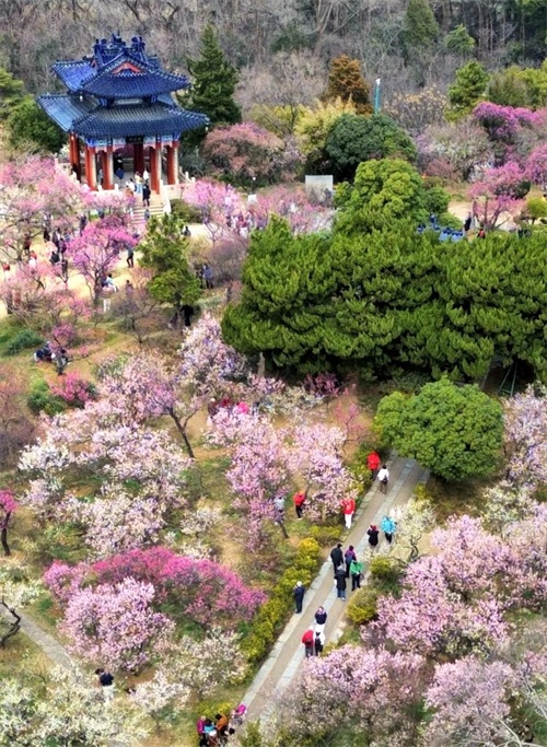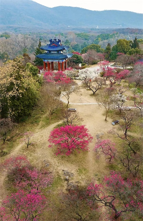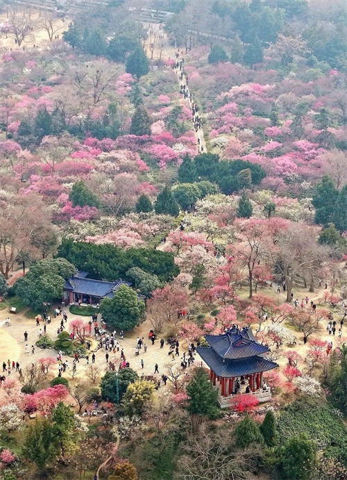 在南京的东郊,有一处地方,每至冬末春初,便成为一片花的海洋,那便是梅花山。被誉为“天下第一梅山”。