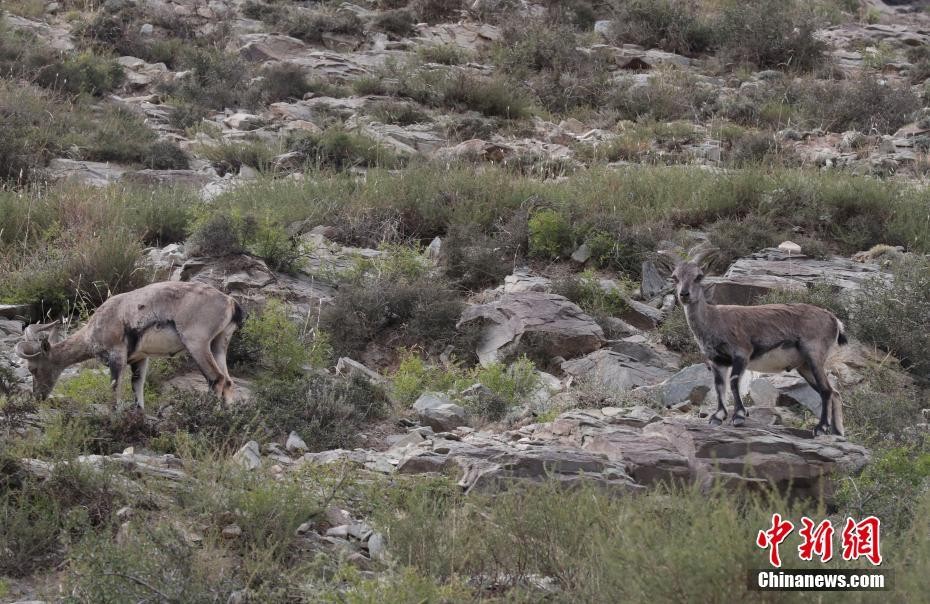 8月22日,岩羊在宁夏贺兰山国家级自然保护区内活动。贺兰山岩壁上跳跃的“精灵”岩羊是国家二级保护动物、濒危野生物种。该保护区是全球岩羊分布密度最大的地区之一,经过多年的环境整治与生态恢复,目前贺兰山岩羊总量达到四万只以上。中新社记者 于晶 摄