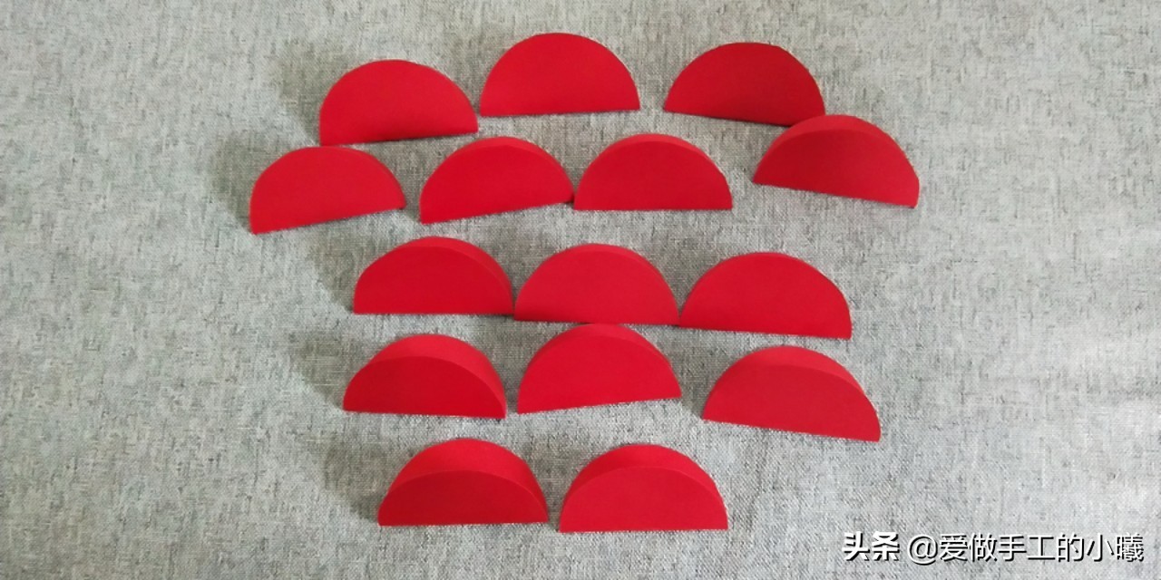 我们需要准备的材料有:15张小圆片,长方形卡纸一张,黄色正方形纸一张,红色细纸条一张,剪刀,胶水。
