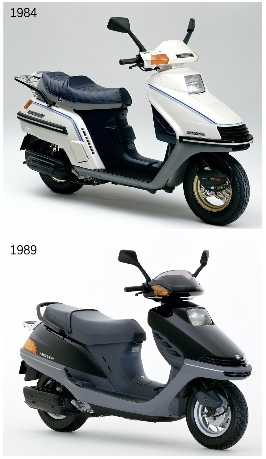 1989年,本田对其进行了改款,并直接以Freeway命名,采用水平气缸布局,车架也进行了大的变动,油箱提升到9.2升,配备了32升的大容量置物箱,这也是250cc级别踏板车中首款配备座桶空间的车型。