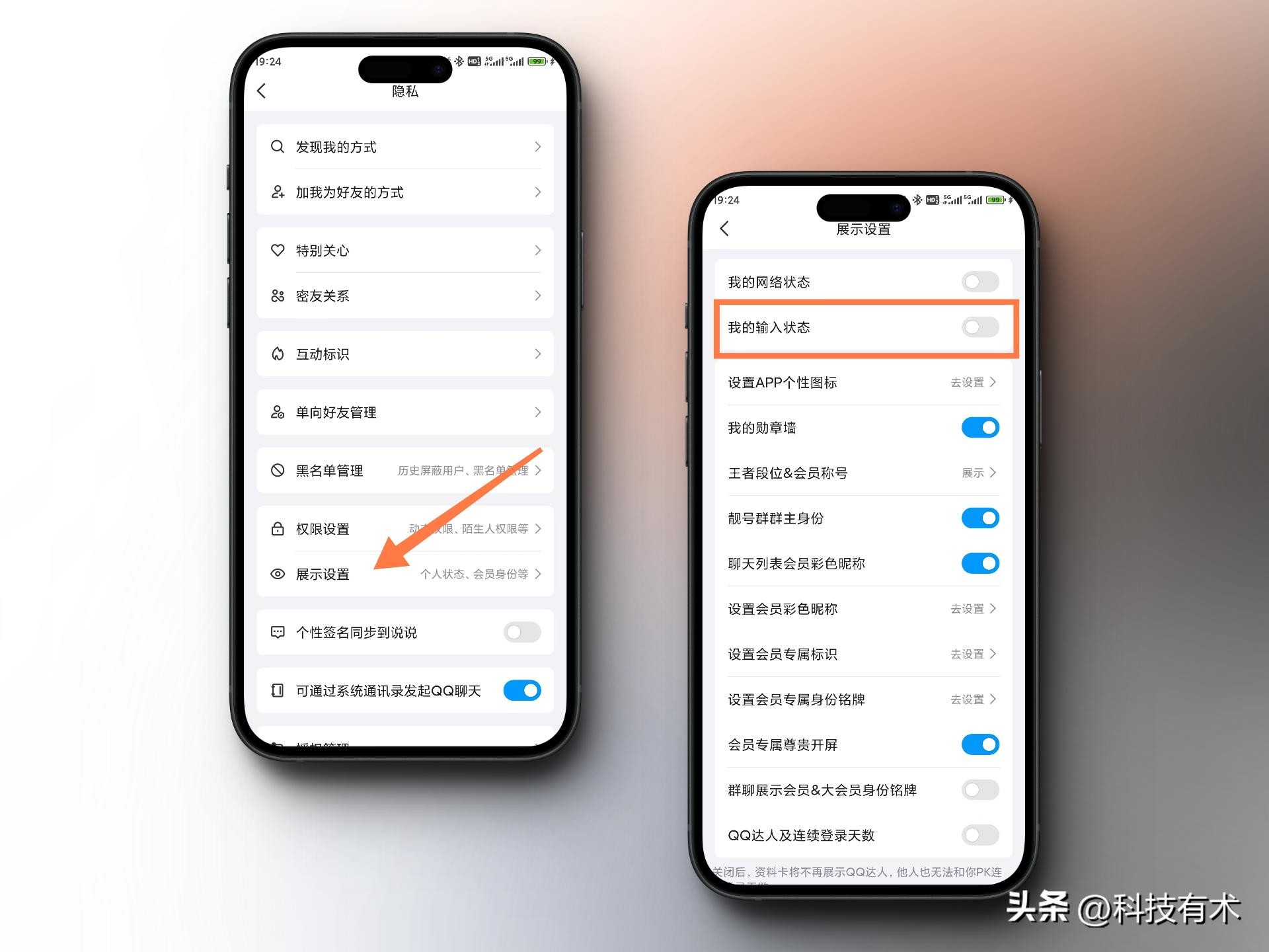 8. 最后,在“展示设置”中找到“我的输入状态”,将其关闭。