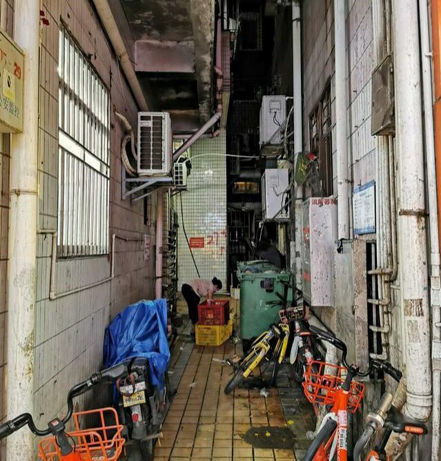 过道的尽头,停满了共享单车,每个人都是那么匆忙,连自行车也摆放得乱七八糟,楼下一位大妈看到一些垃圾没扔到垃圾桶,弯腰就收拾起来,住在这里就是这个村子的一员了,房东再涨房租,那也是我暂时的家,环境卫生最重要。