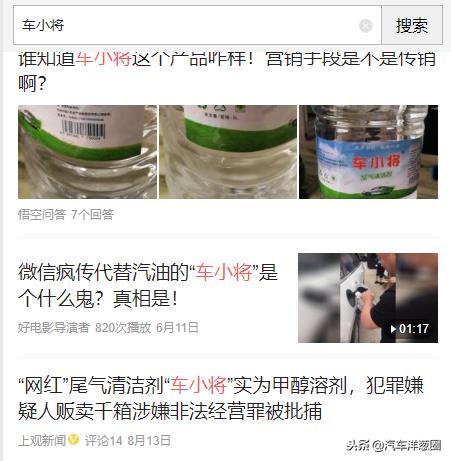 查询资料后发现:燃油宝主要成分为聚异丁烯胺,而车小将主要成分是甲醇,包装上注明的含量“大于等于60%”,但实际含量远不止于此。除此之外,车小将和燃油宝的使用量也有很明显的差别。燃油宝添加比例只有汽油的千分之一,且不需要经常使用;车小将不仅要常态化使用,单次添加比例更是燃油宝的几百倍。