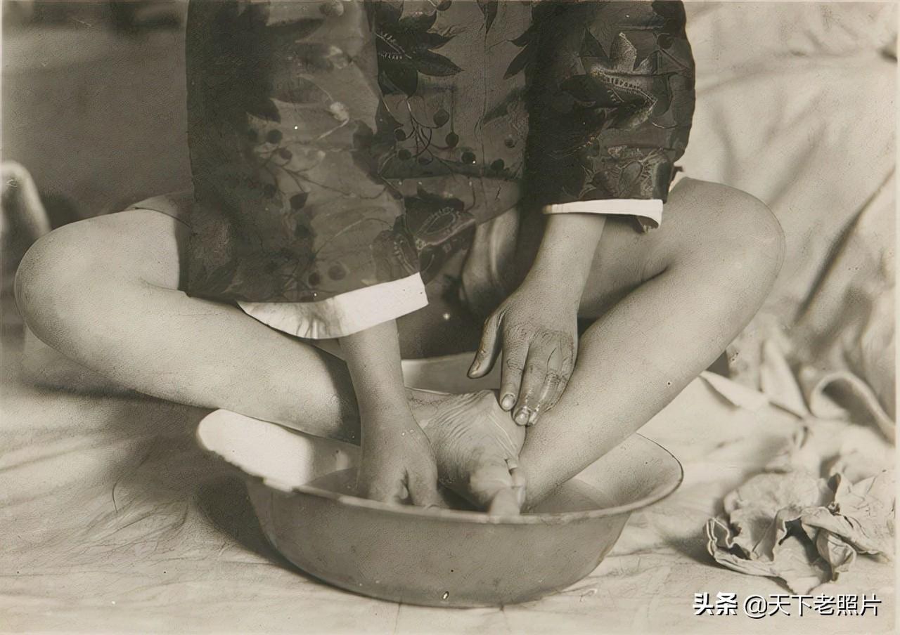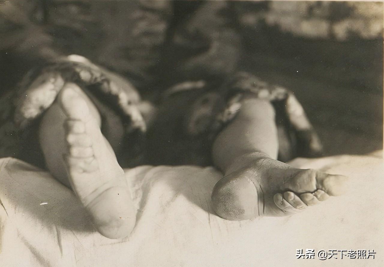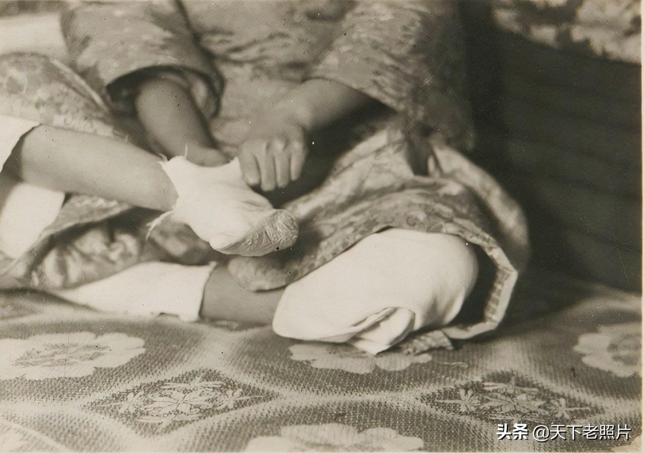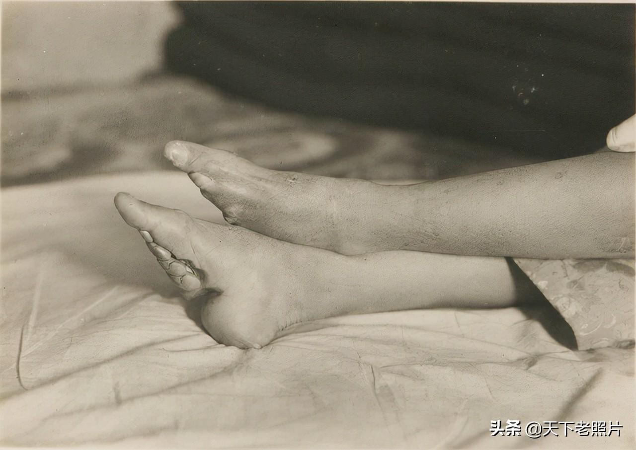 在这组照片中,给我们展示了30年代的小脚女子的脚变形了何等模样,以及她们是平时如何打理自己的脚,和穿什么样的袜子和鞋子。