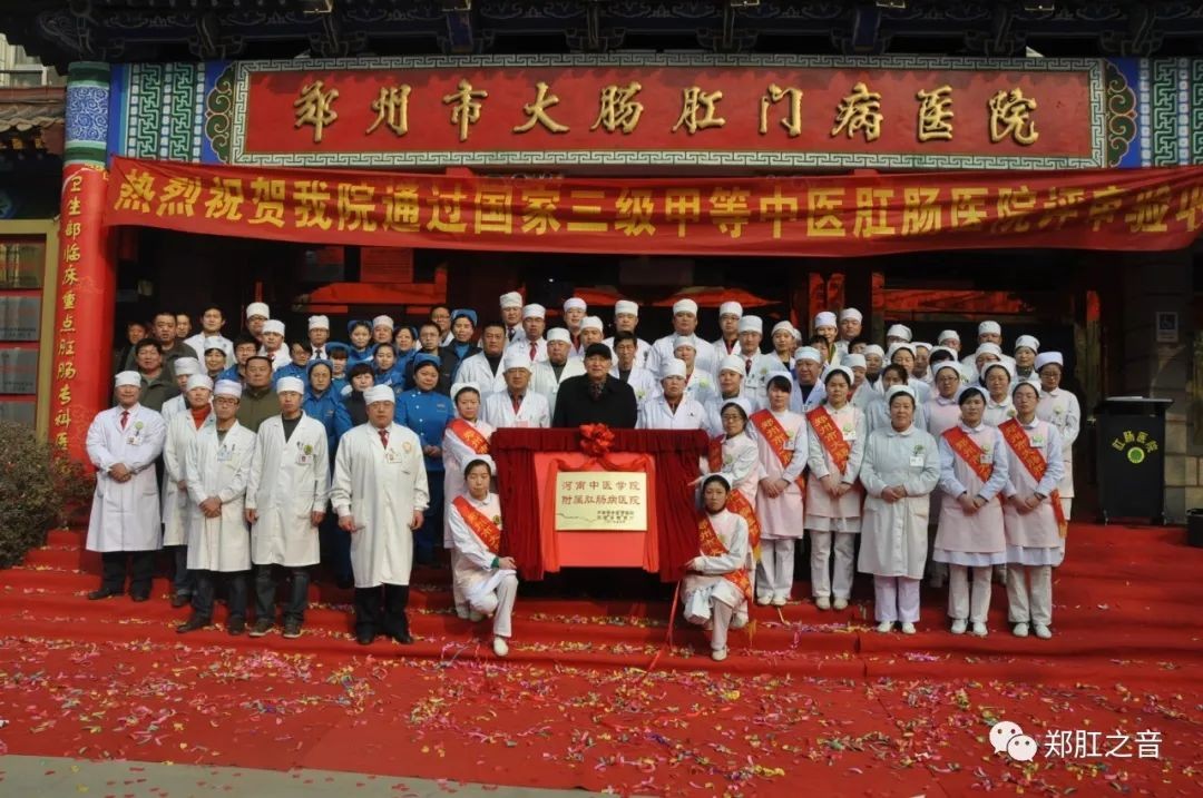 2019年,经过多年来的不懈努力, 发展为拥有6个病区,近200名医护人员,320多张床位的一所集医疗、科研、教学、预防、康复为一体的三级甲等中医专科医院;设有普通病房、标准病房和高档病房,满足患者不同层次的服务需求,被卫生部授予国家临床重点肛肠专科医院,是全国肛肠病协作组组长单位,入选全国区域肛肠诊疗中心及河南省区域肛肠诊疗中心建设单位,成为河南中医药大学附属郑州市大肠肛门病医院,河南省中医(中西医结合)肛肠学会会长单位,是省、市医保及“新农合”定点直补单位,跨省及省内“城乡居民”异地就医定点医院,省、市干部保健基地医院。年门诊量10万多人次、住院病人近万人次、手术量5000多台次,成为河南省当仁不让的肛肠事业领头人,享誉海内外。
