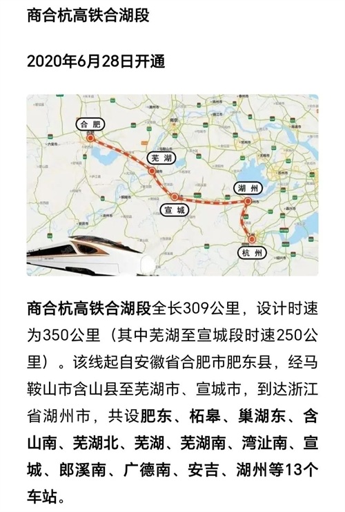 上图线路:上海虹桥~湖州~合肥