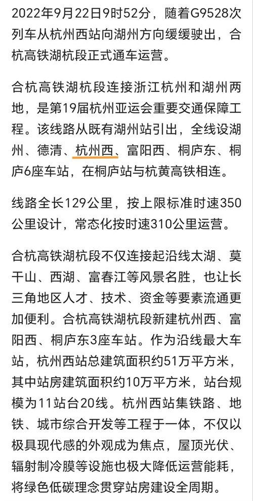 杭州西~湖州~苏州南~苏州北(合杭线湖杭段~沪苏湖线~通苏嘉甬线)