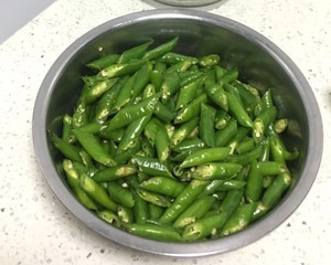 12、烧开放凉后,倒入辣椒段中,操作,腌制3天左右即可食用。