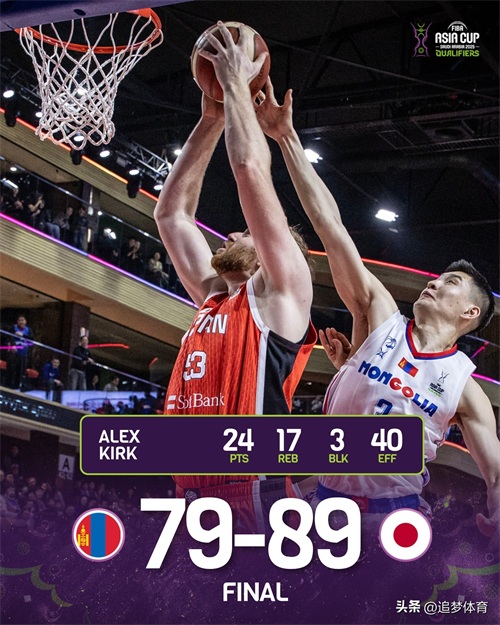 下半场日本队稳居了场上局面,虽然打的很激烈,但日本队主导了进程,逐渐将比分拉大,最终日本89-79客场战胜蒙古,小组赛5胜1负。