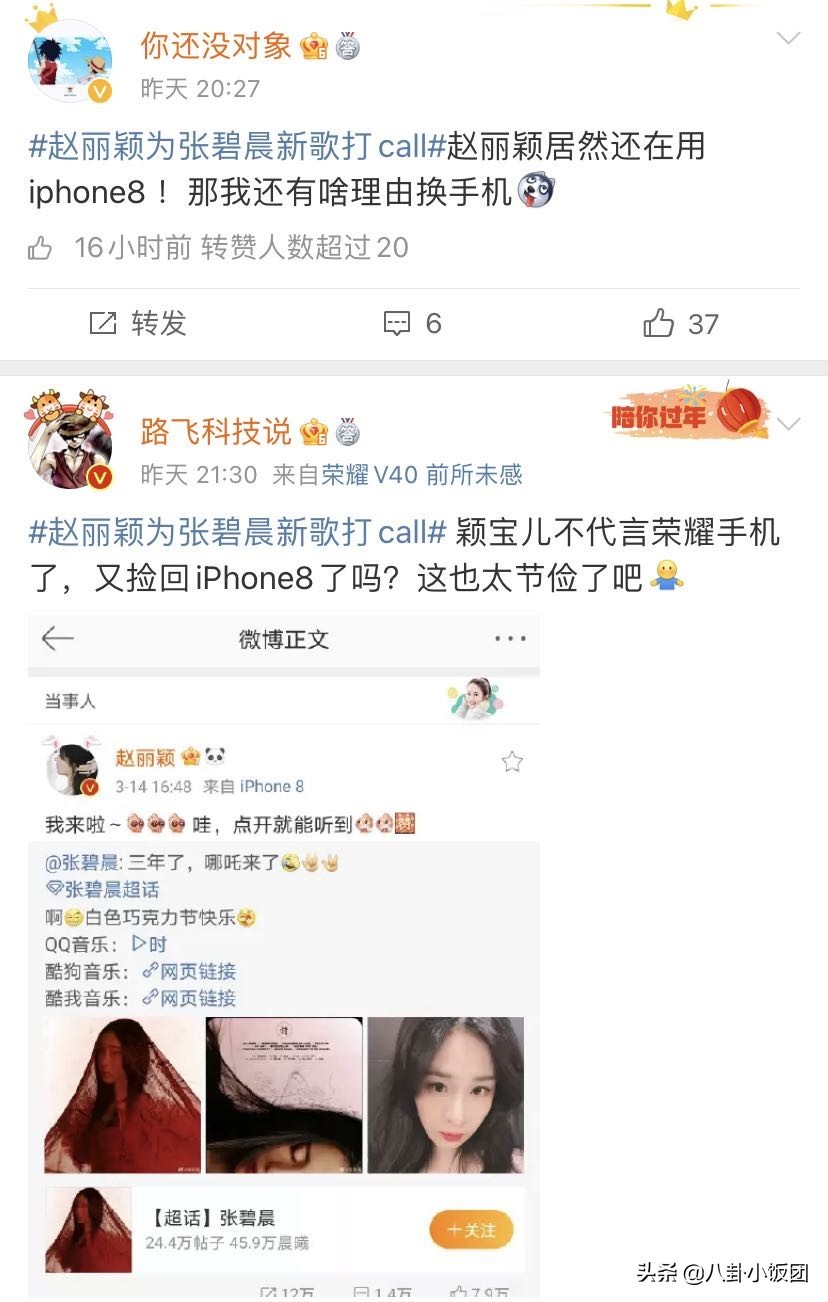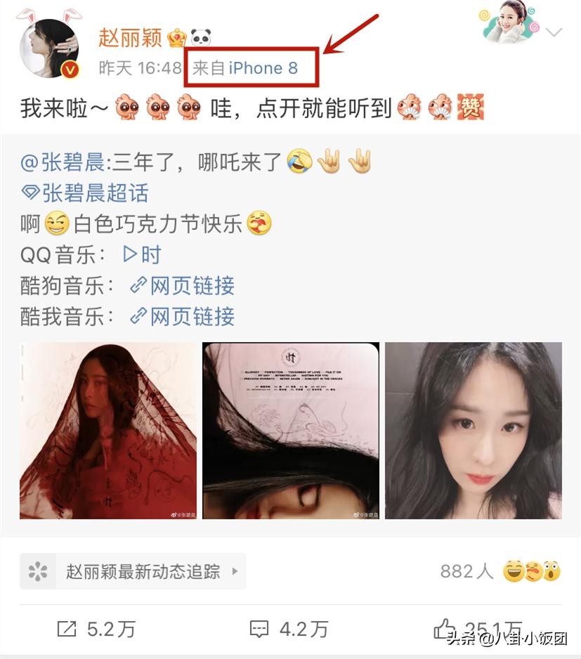 不过,有眼尖的网友并没有将关注的焦点放在两位女星的深厚友谊上。而是意外发现赵丽颖发文的客户端所显示的手机型号竟然是iPhone8。