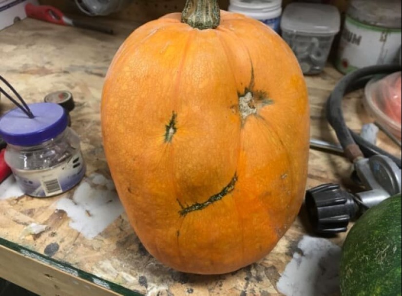 第一个、南瓜上几乎长着一个真的“骷髅头”,太吓人了!