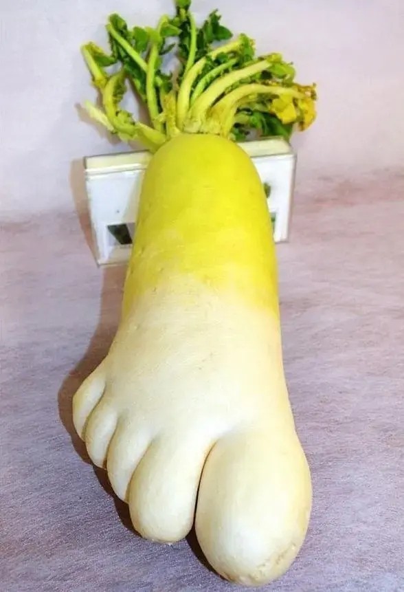 第五个、这个白萝卜,刚好有五个脚趾头,一个不多,一个不少。