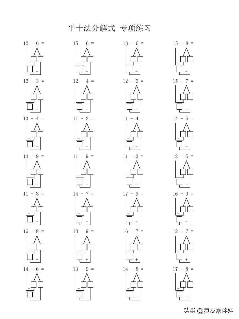 一年级数学上册用「凑十法破十法」快速计算20以内加减法专项练习 2026-03-26 10:03 点击: 来源:迪趣网 摘要:一年级数学上册用「凑十法破十法」快速计算20以内加减法专项练习 凑十法 核心口诀:看大数,分小数。凑成10,加剩数。 破十法 核心口诀:看大数,分出10,一减一加算得数。 平十 一年级数学上册用「凑十法破十法」快速计算20以内加减法专项练习凑十法核心口诀:看大数,分小数。凑成10,加剩数。破十法核心口诀:看大数,分出10,一减一加算得数。平十法核心口诀:分小数,连续相减算得数。 相关标签: 上一篇:推荐18部超级搞笑的喜剧片,保证让你开心到飞起 下一篇:安全生产月,漫画说安全