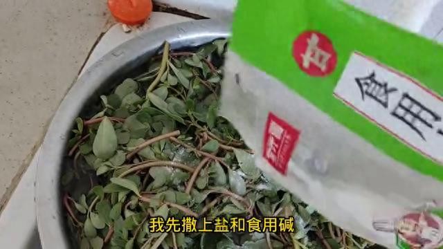 ·首先把马蜂菜洗净,为了确保它的安全,我先撒上盐和食用碱,让它浸泡二十分钟左右,这样可以有效去除可能残留的农药。