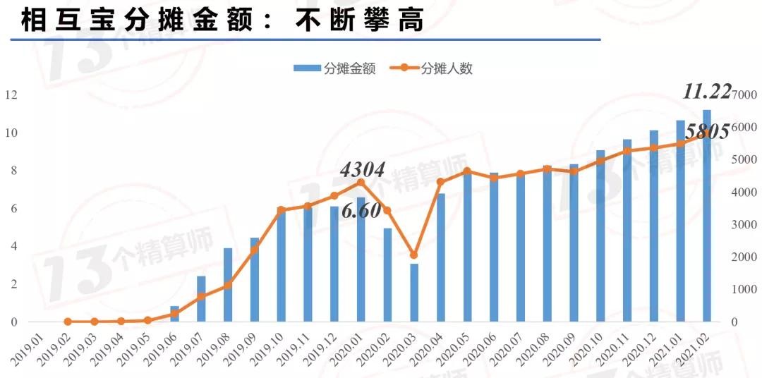 2. 以相互宝为例,参与人数下降,分摊金额上升!