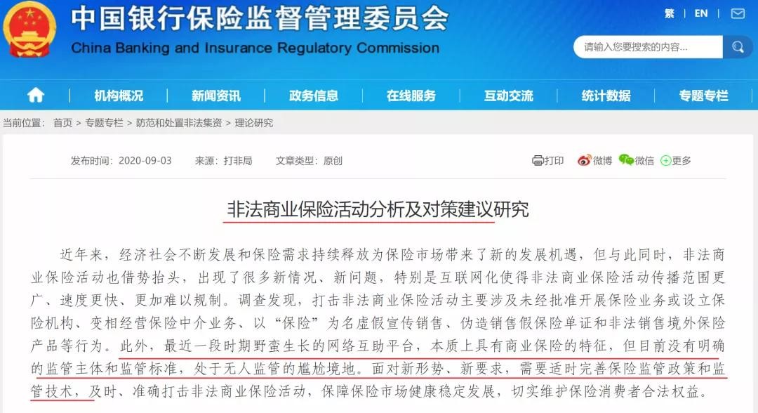 现如今,再度回想银保监会打非局,于2020年9月发布的《非法商业保险活动分析及对策建议研究》。