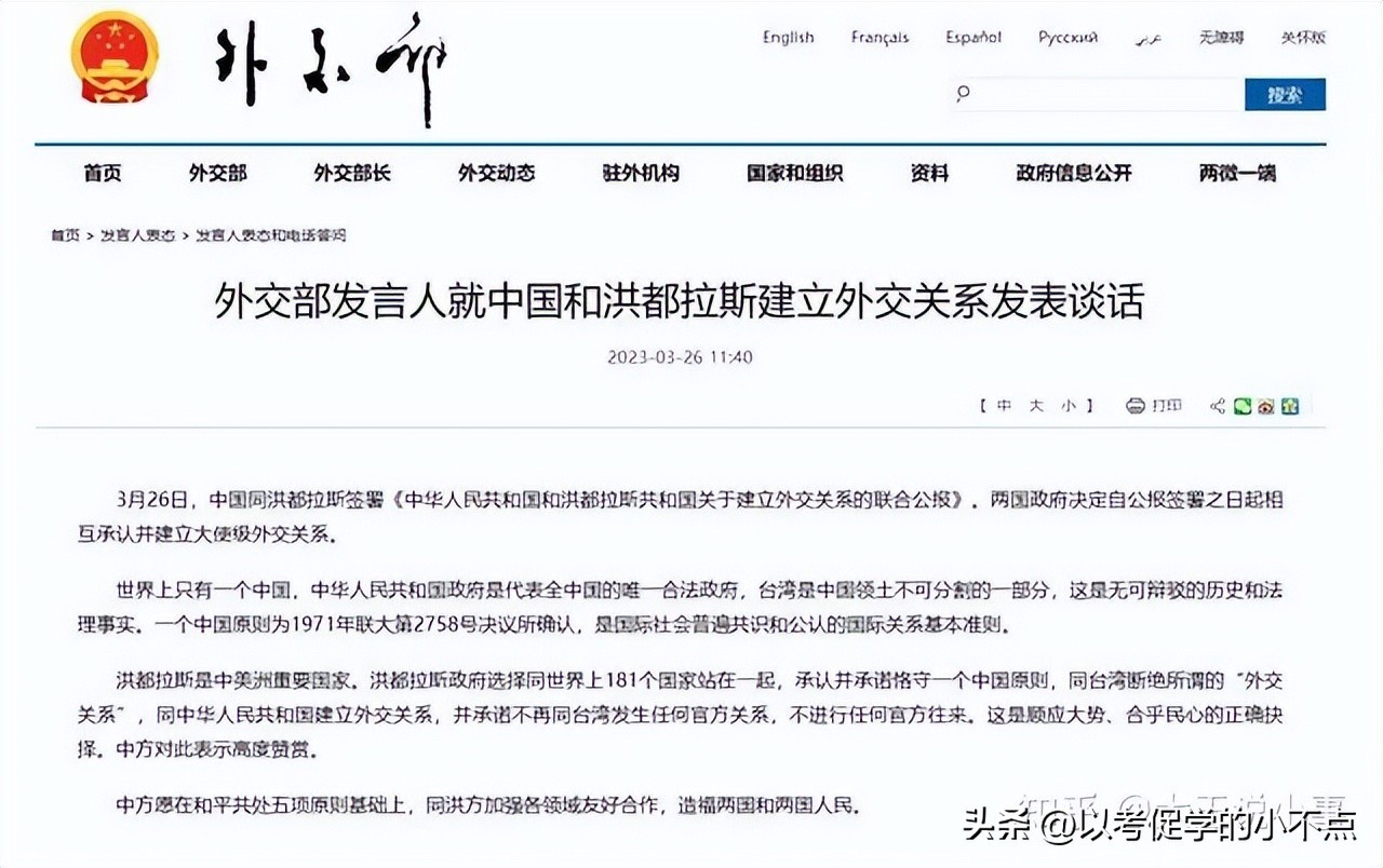3月26日 11:52 外交部发言人就中国和洪都拉斯建立外交关系发表谈话