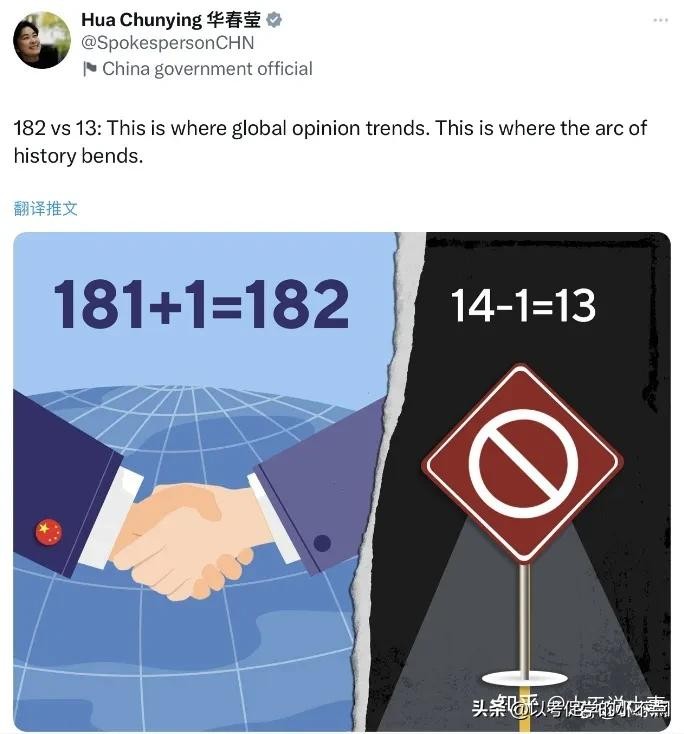 对未与中国建交的13个国家说:世界上只有一个中国,中华人民共和国政府是代表全中国的唯一合法政府,台湾是中国领土不可分割的一部分,这是无可辩驳的历史和法理事实。一个中国原则为1971年联大第2758号决议所确认,是国际社会普遍共识和公认的国际关系基本准则。世界上有182个国家在一个中国原则基础上同中国建交,这是国际共识,也是历史发展大势和时代进步潮流,尽快做出选择吧。