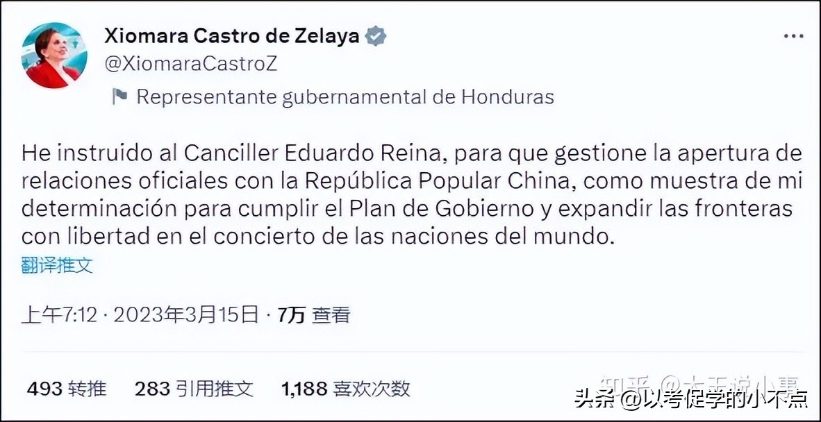 从3月15日洪都拉斯总统提出寻求与中国正式建立外交关系以来,短短10天时间,两个国家就正式建立了外交关系,效率不可谓不快,奥里给。我们来梳理看一下整个建交过程。