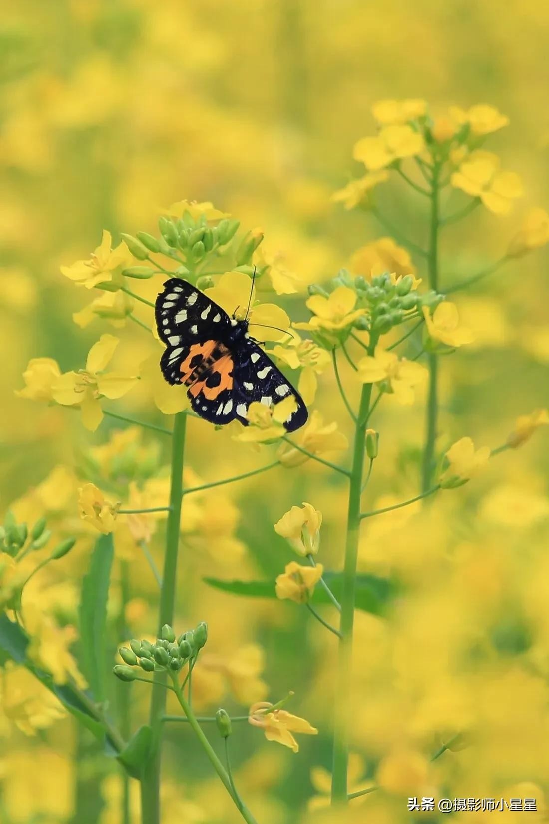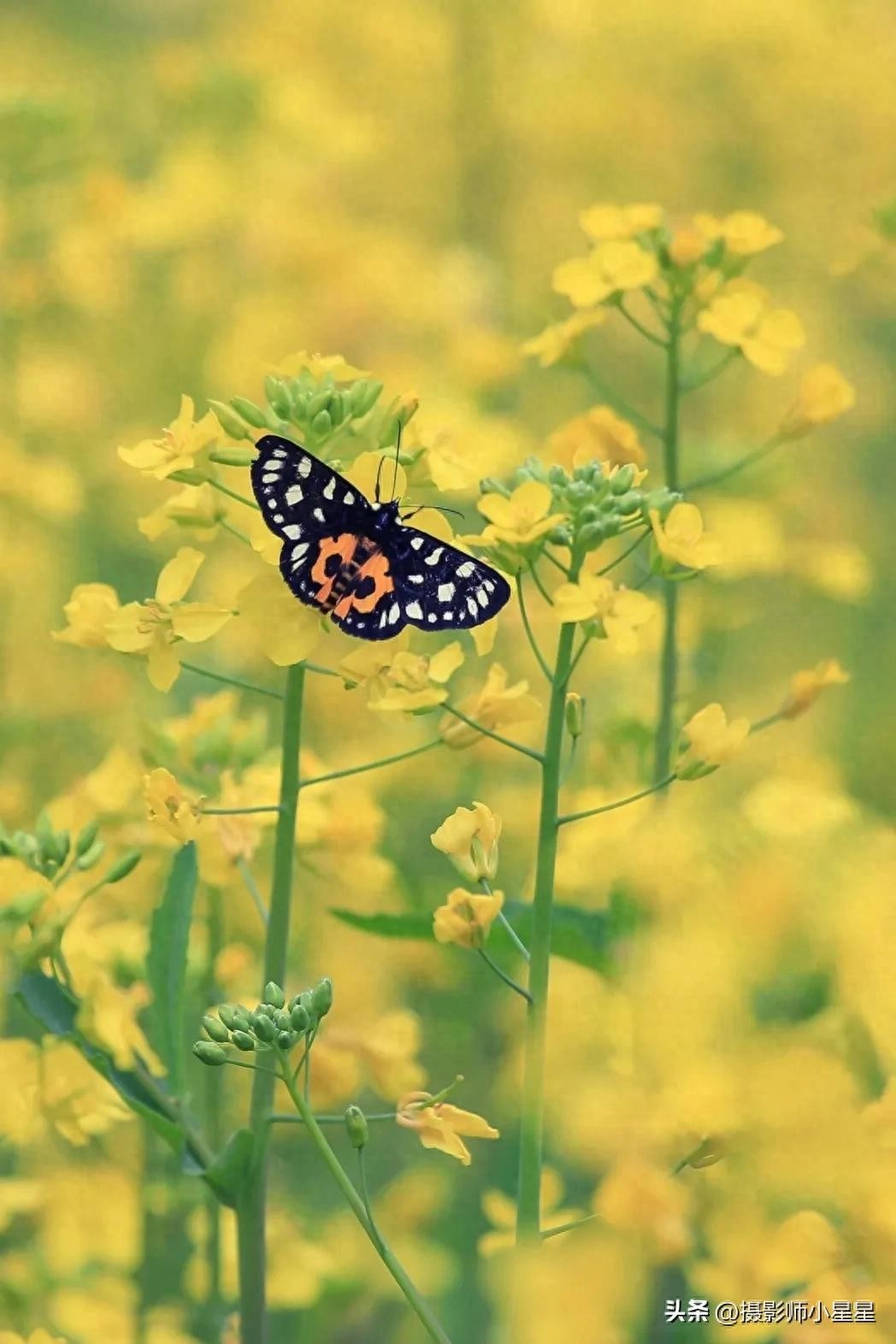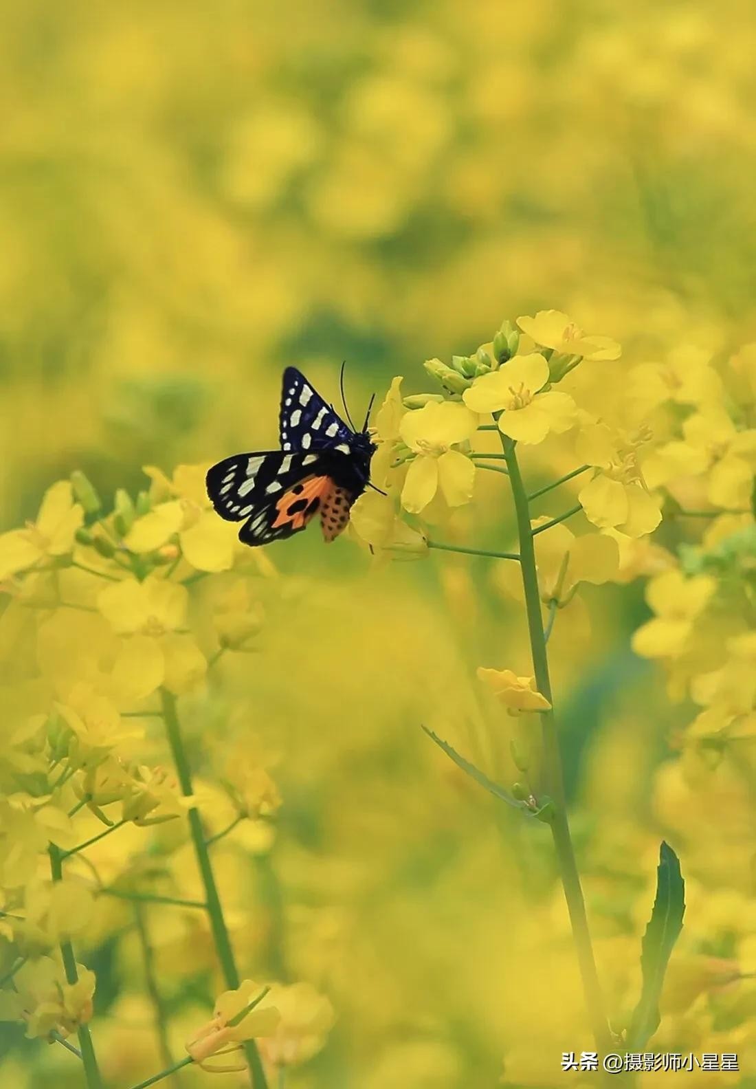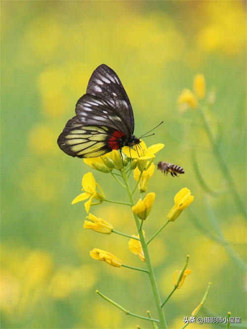 拍摄油菜花我们还可以搭配蜜蜂、蝴蝶等昆虫,能够为照片增添生动和自然的感觉。下面总结了拍摄油菜花搭配昆虫的好处: