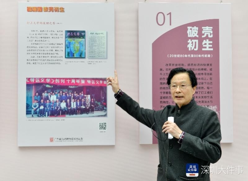 此次展览,以时间为脉络,通过梳理重要事件、文学作品和学术研究,系统回顾打工文学从萌芽、发展、逐渐繁荣的发展历程,为观众打开一扇通往打工文学世界的大门。