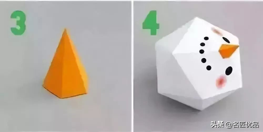 制作步骤:这款可爱立体多边形雪人主要分为3个部分完成,分别是头部、身体和鼻子,其中身体和头部的折法是一样的,只是身体个头稍大而已。