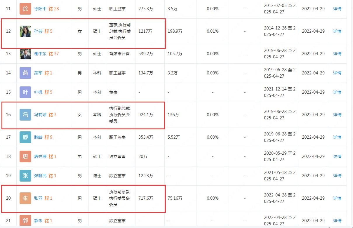 3、孙芸,董事,执行副总裁,执行委员会委员,年薪1217万;