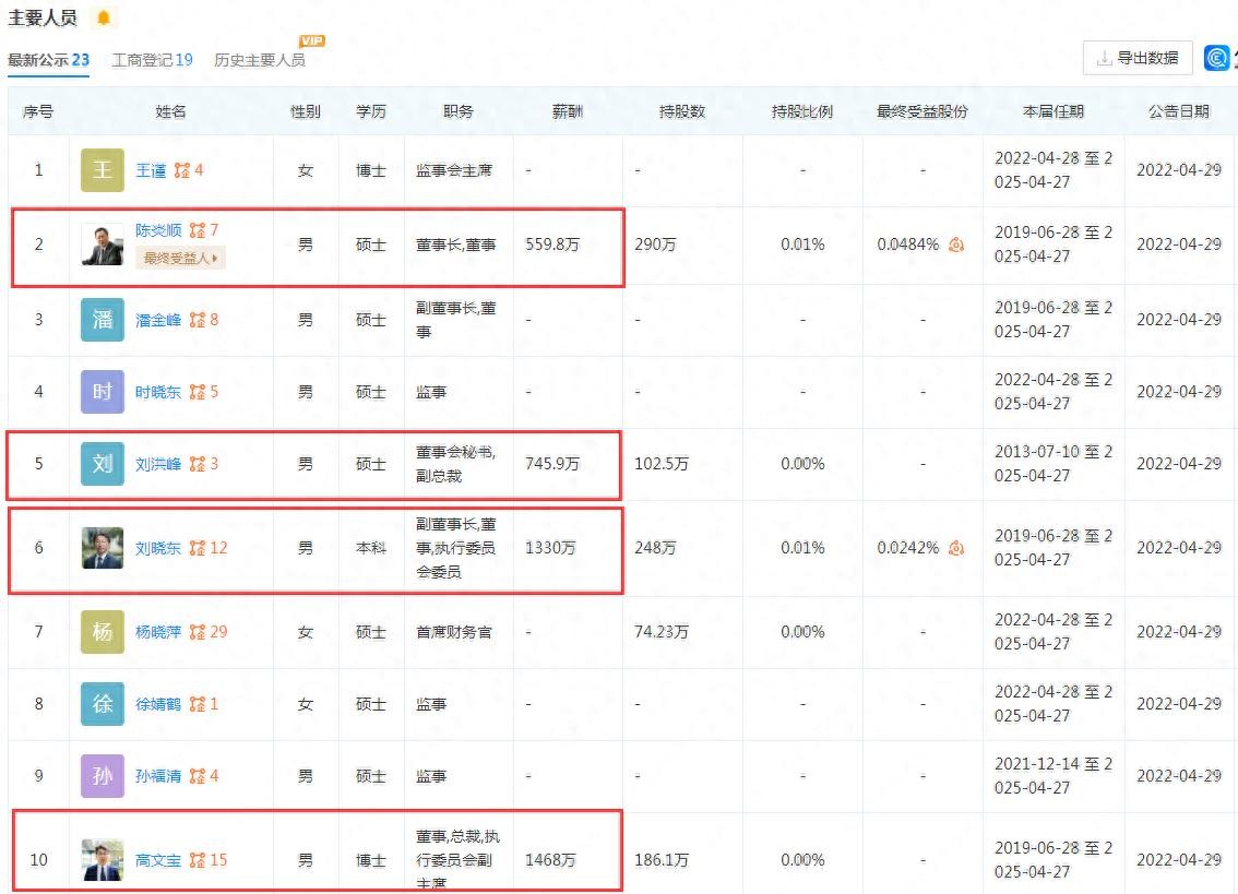 企查查显示的2022年4月公告的部分高管年薪如下: