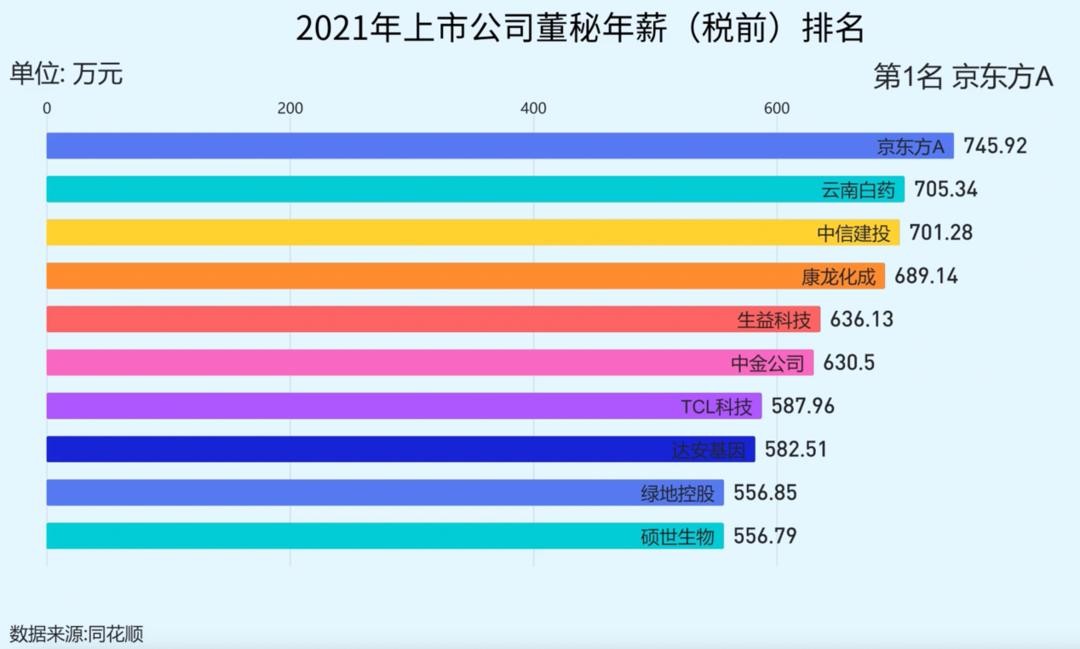 京东方:高管薪酬3人超1000万,2021年董秘薪酬榜占居榜首