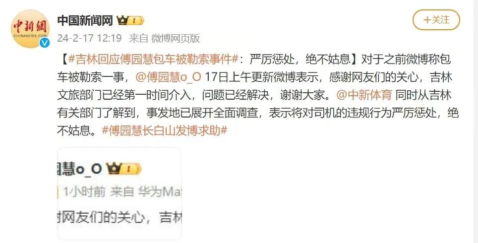 730万粉傅园慧吉林包车被宰官方2小时摆平,网友热议若是普通人呢
