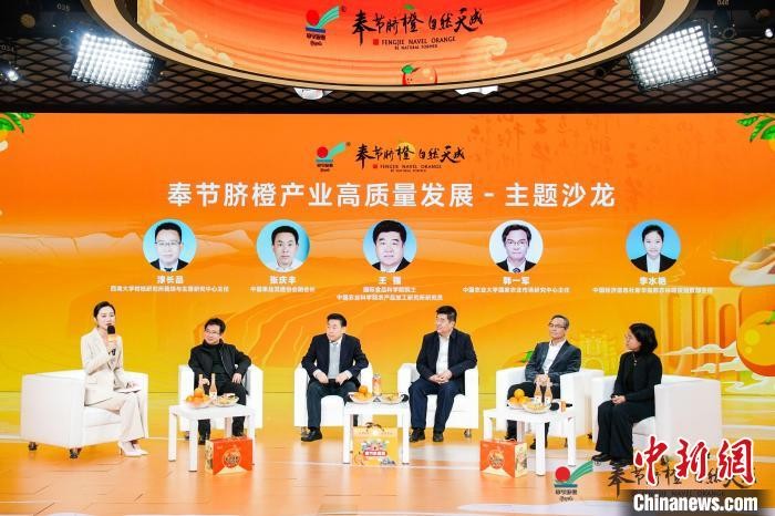 奉节脐橙产业高质量发展主题沙龙。相关领域多位专家一同探讨奉节脐橙产业高质量发展密码,为未来脐橙产业发展聚智献策。(主办方供图)