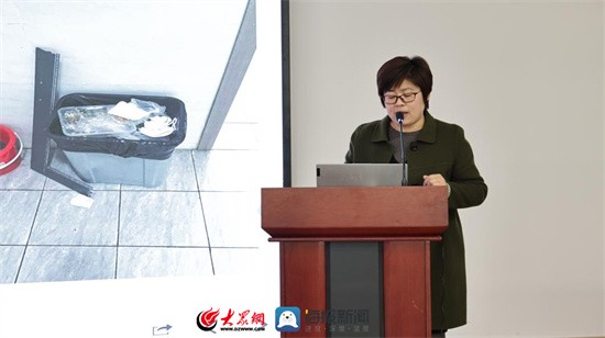 邸湘红主任对校园卫生检查发现的问题、学校卫生现状进行总结,并强调了潍坊新华中学校园环境卫生管理制度以及卫生检查标准。