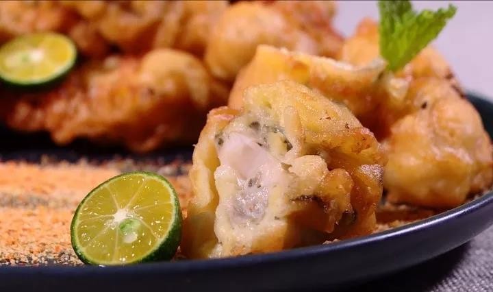 复炸至生蚝表面变得金黄酥脆,这道炸生蚝就做好了。用青柠和椒盐摆个盘,光看着就让人忍不住食指大动!尝一口,生蚝肉炸着吃外焦里嫩,沾蕃茄酱、甜辣酱、酱油都很好吃。