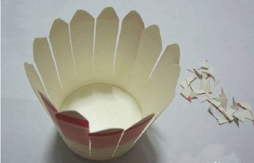 7.然后再把割了底的杯子的周围剪一圈下来。