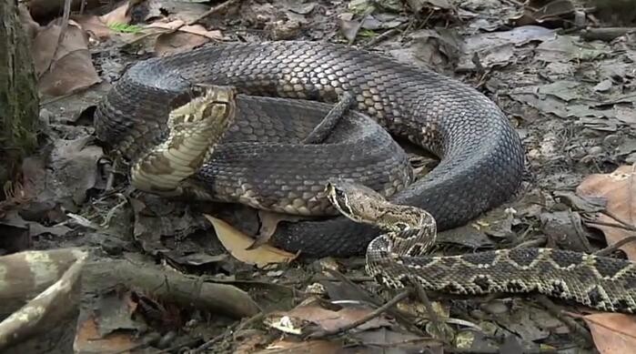 刚开始,响尾蛇还是不怕它的,率先发出了攻击的姿势