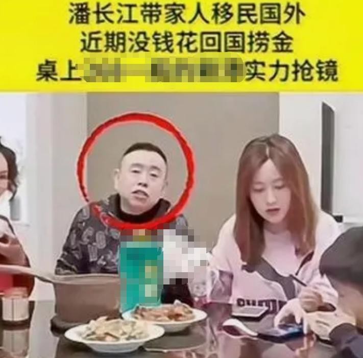 同一时间,网上还流传出一张据说是潘长江与家人们在美国豪宅吃饭的照片。照片上的文字写道,潘长江带家人移民国外,近期没钱花回国捞金。