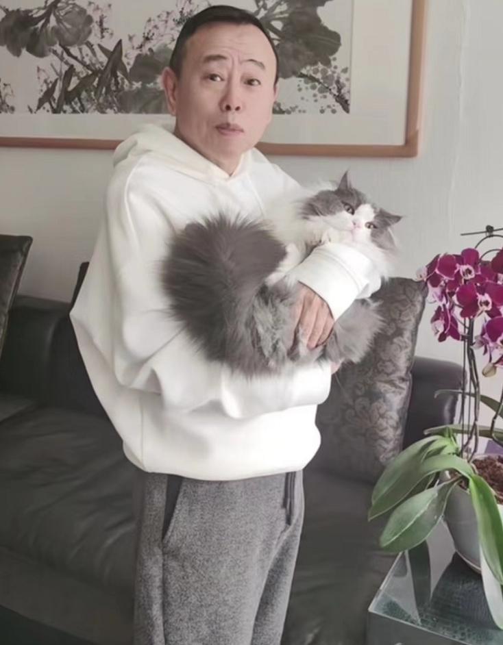只见他穿着白色卫衣和灰色休闲裤,打扮居家。已经65岁的他,精神奕奕,状态大好,十分老当益壮。